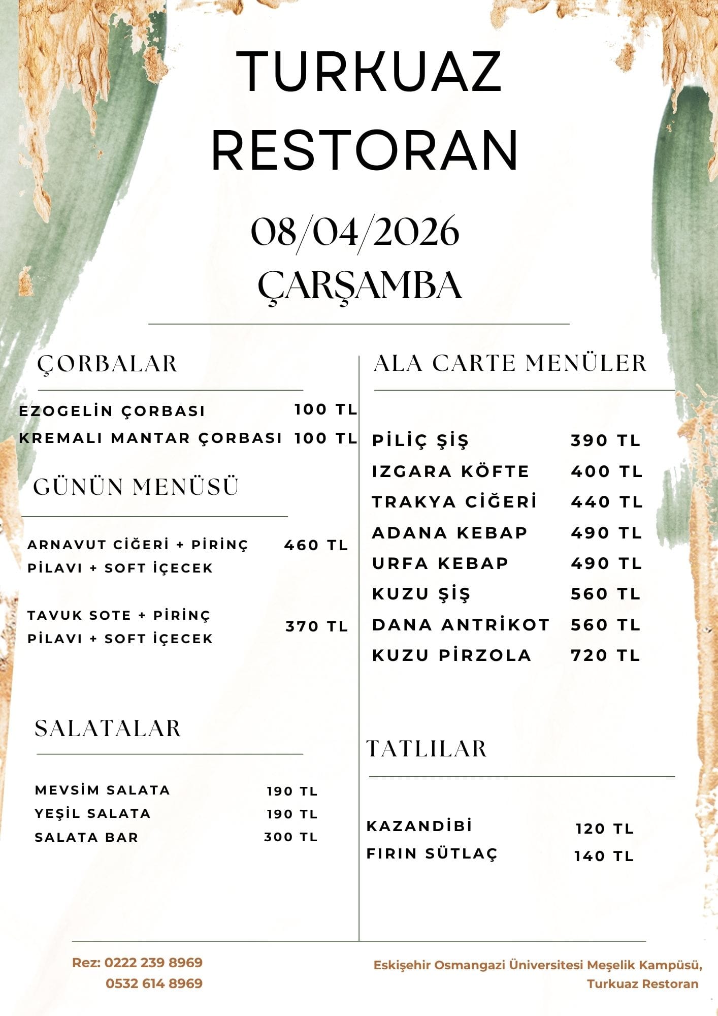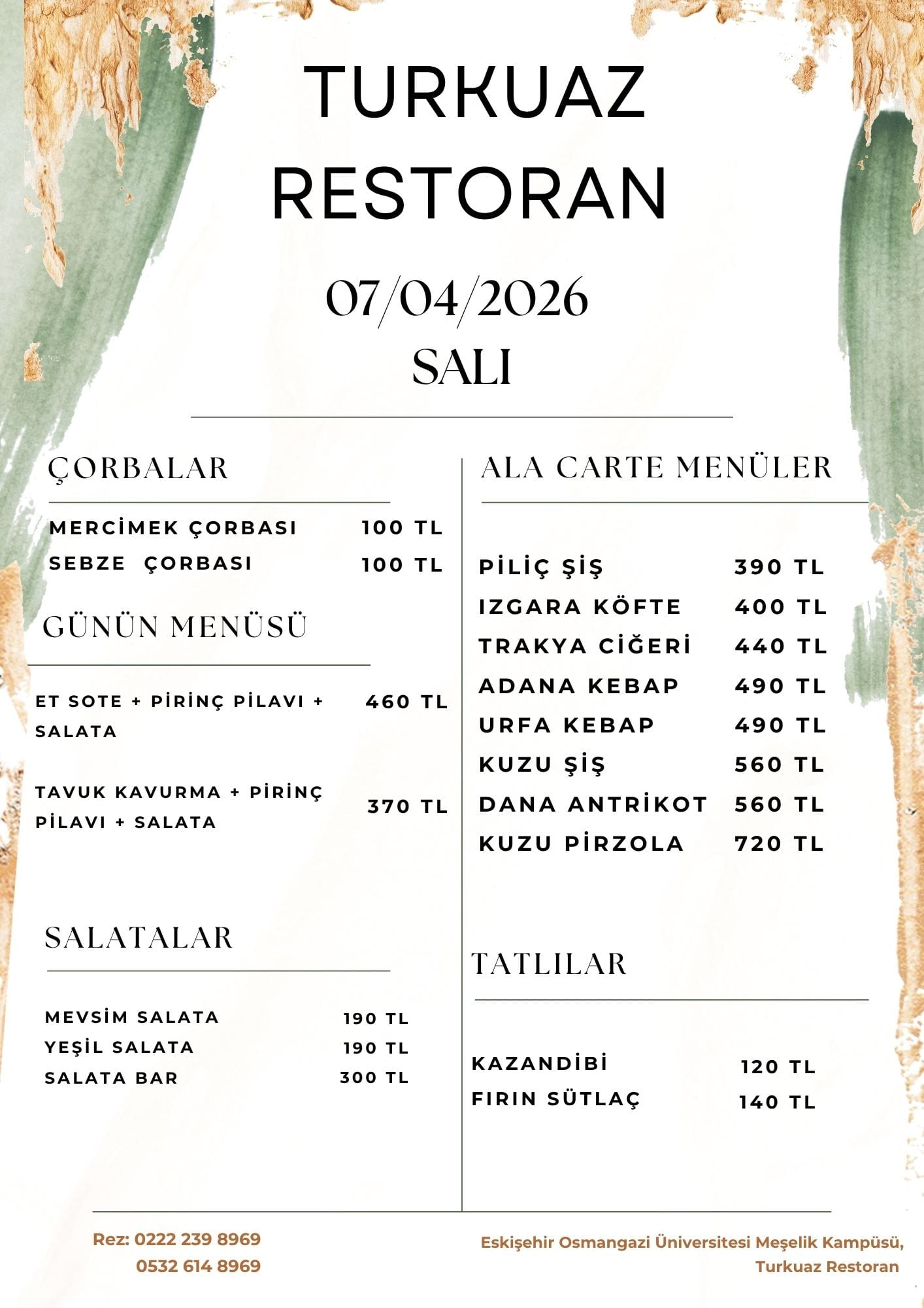 Turkuaz Restoran Günlük Menüler